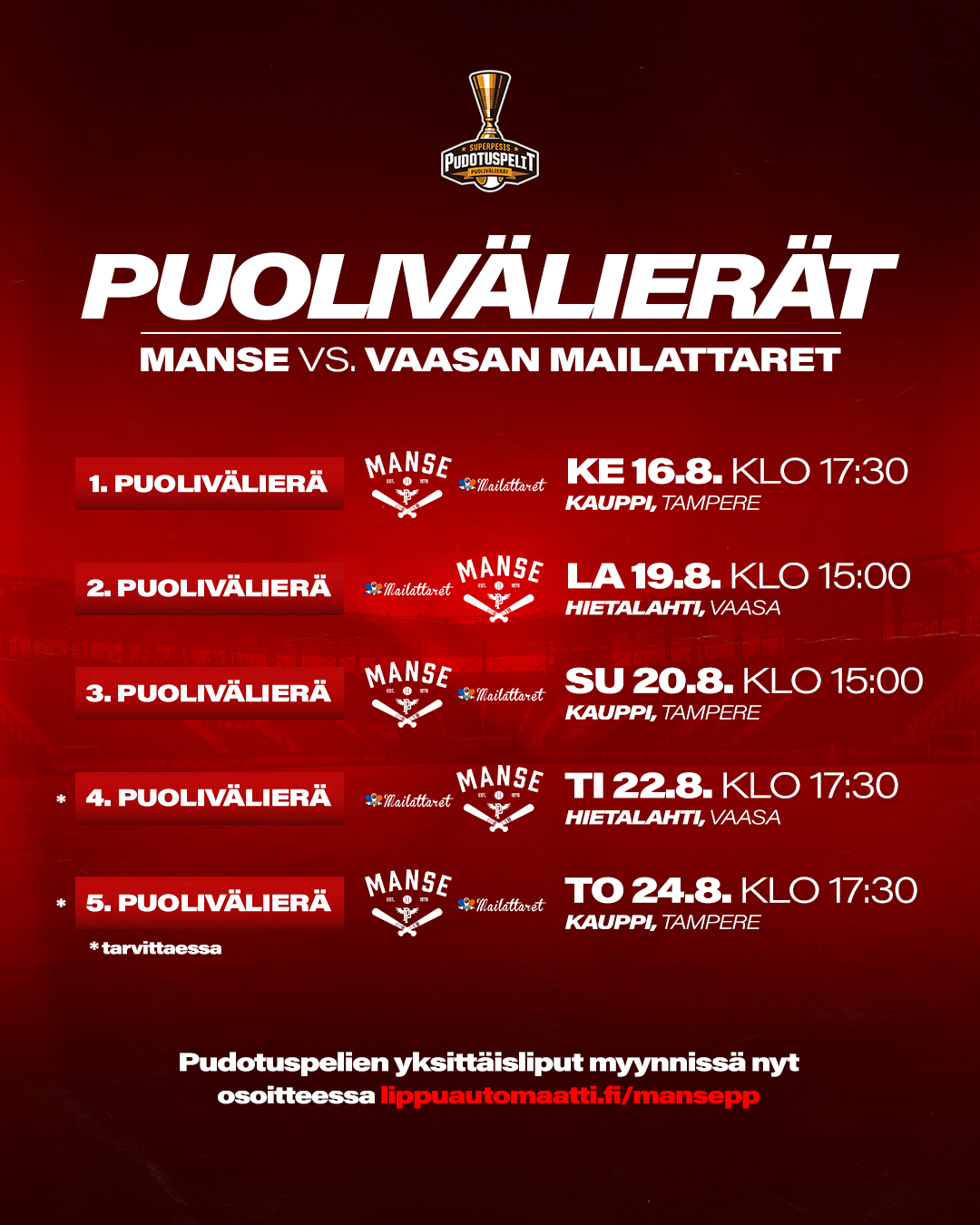 Naisten ja miesten pudotuspelikausikortit ovat myynnissä nyt!