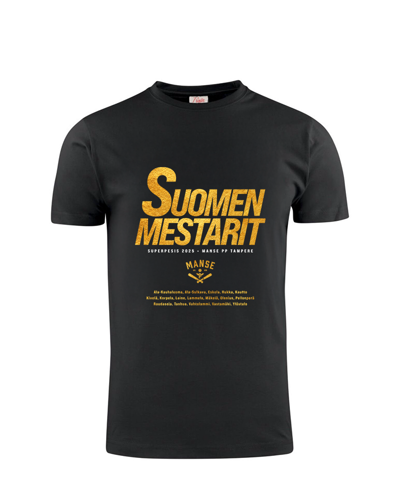 Manse PP Naiset: Suomen mestarit 2025 t-paita24,00€Valitse vaihtoehdoista Tällä tuotteella on useampi muunnelma. Voit tehdä valinnat tuotteen sivulla.